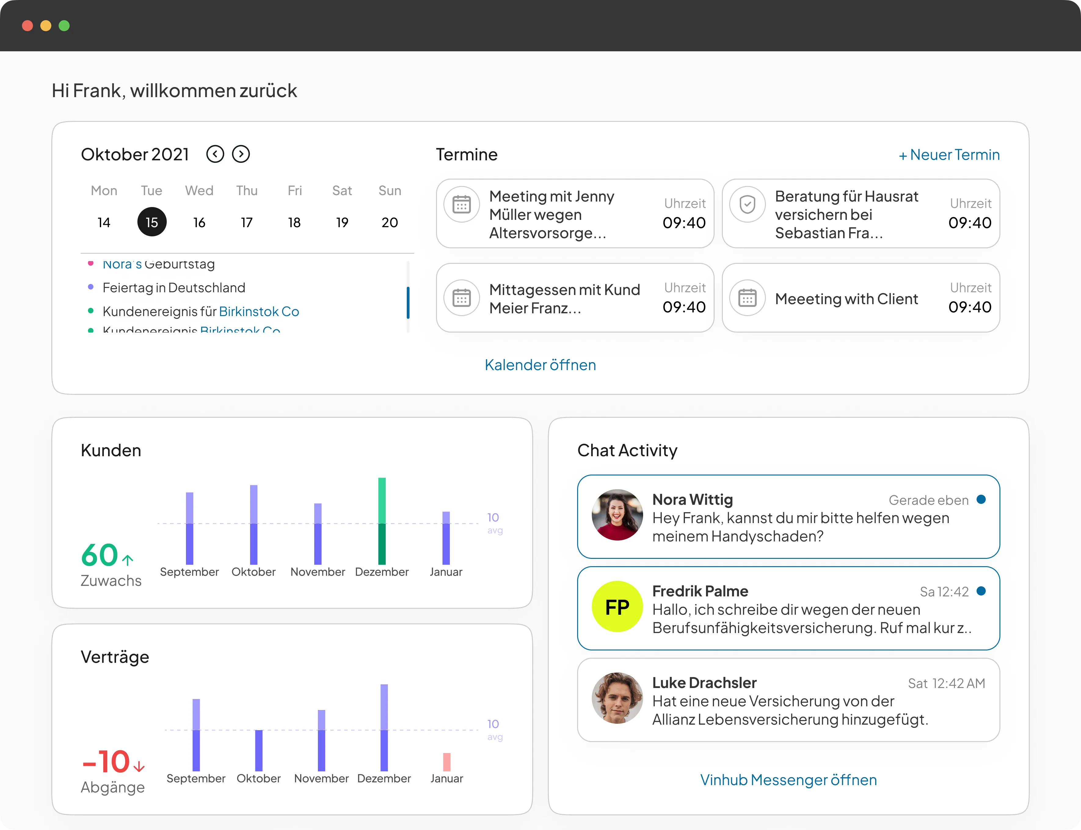 Spare mit Vinlivt über 8 Stunden pro Woche mit automatisiertem Onboarding, smarter Beratung und weniger Verwaltungsaufwand in deinem Finanzvertrieb. Präsentiere dich wie ein Tech-Unternehmen und hebe verborgene Umsatzpotenziale auf Bankerniveau, bevor andere Makler sie überhaupt sehen.